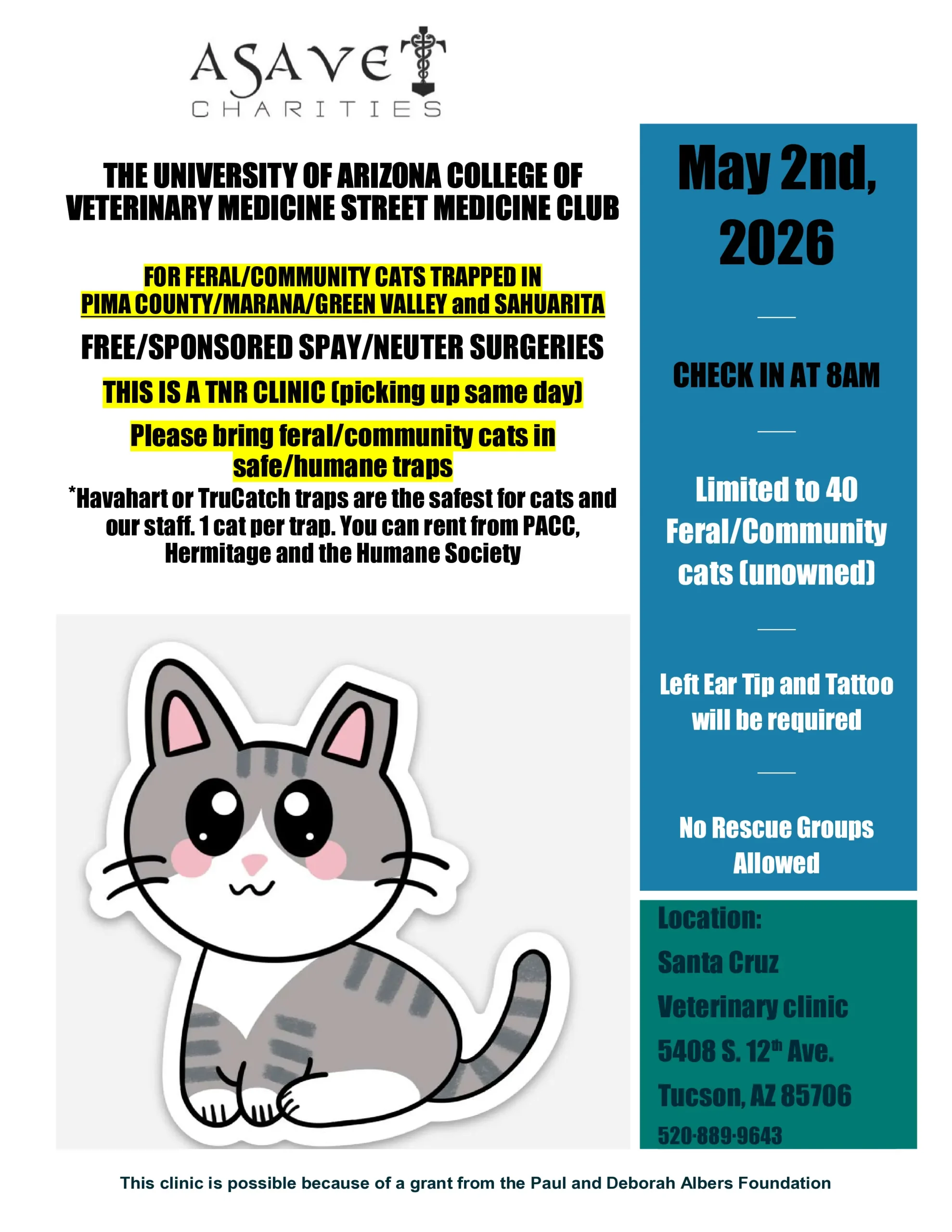 We are no longer taking ferals/TNR on Fridays (no surgeon on Fridays).